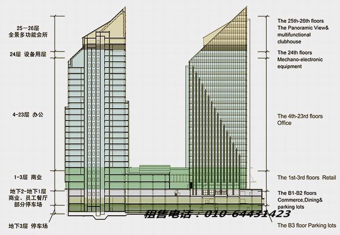 位于东三环国贸桥南约1000米处有一处绝对24hour乐心情之城——乐成中心(Landgent Center)。他就在CBD区域国贸桥南“金十字”东北角,是承上启下国际商务坐标;是两座国际甲级写字楼和高档购物中心;更是将高品质休闲文化艺术汇聚于总建筑面积10.68万平方米空间,两栋26层体量相当的甲级写字楼与一座三层的商业裙楼,地铁10号线与乐成中心地下二层直接连通。制造出商圈内罕有的乐动心情的五星级商务综合体。