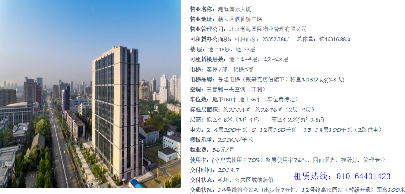 大厦位置优越,配备齐全-银行(宁波银行)、餐饮(必胜客、顺口溜、正一味等)、超市(7-11便利店)、酒店(锦江、桔子、丽都饭店)。交通便利通达性强,项目距地铁14号线将台站步行8-10分钟路程,除现有轨道交通外周围还有多路公交线路可直接到达。大厦附近环境优美,区域内绿化完善,营造了低密度安静的办公环境。
