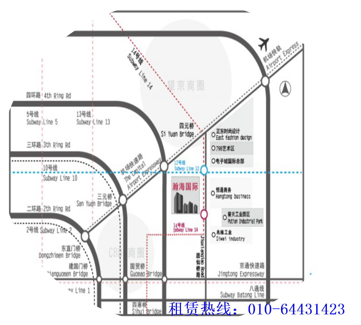 项目隶属朝阳酒仙桥核心区域。大厦距第三使馆区、望京商业圈、丽都商业圈仅10分钟路程,到达首都机场和北京CBD核心商务区仅需15-20分钟。
